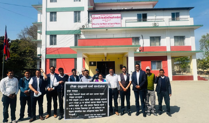लेखा समूहतर्फका कर्मचारी वृत्ति विकासको कानुनी व्यवस्थाको माग गर्दै एक साता अघिदेखि आन्दोलित छन्। उनीहरूले फागुन २१ गतेदेखि भुक्तानी तथा निकासा रोक्का गरेका छन्। प्रदेश मन्त्रालय, प्रदेश सभा सचिवालयहरूमा अहिले पनि लेखा अधिकृतको दरबन्दी रहेको छ। प्रदेश सचिवको दरबन्दी रहेका कार्यालयहरूमा लेखा अधिकृतको स्थानमा लेखा उपसचिवको दरबन्दी बनाउन सक्दा आफूहरूको माग सम्बोधन हुन सक्ने उनीहरू बताउँछन्।