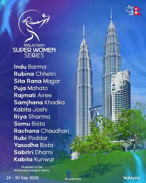 मलेशियन सुपर वुमन शृङ्खला आउँदो सेप्टेम्बर २४ देखि ३० अर्थात् असोज ९ गतेदेखि १४ गतेसम्म मलेशियामा हुनेछ ।