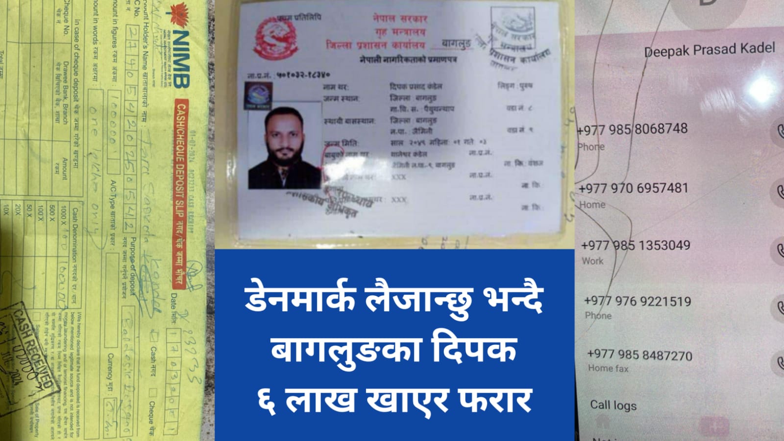 डेनमार्क लैजान्छु भन्दै बागलुङका दिपक कडेल ६ लाख खाएर ६ महिना देखि फरार